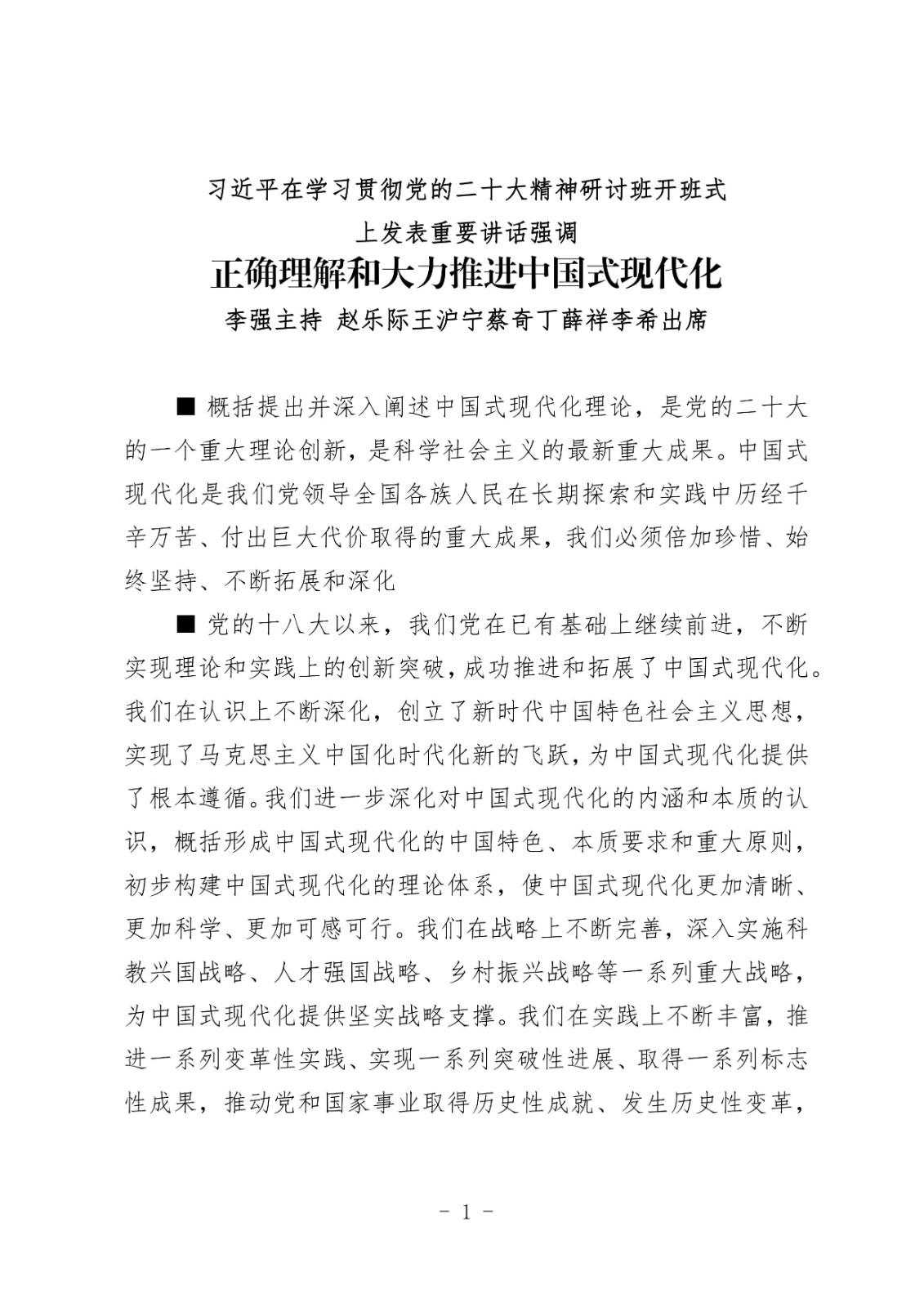 習(xí)近平在學(xué)習(xí)貫徹黨的二十大精神研討班開班式上發(fā)表重要講話強(qiáng)調(diào)正確理解和大力推進(jìn)中國(guó)式現(xiàn)代化