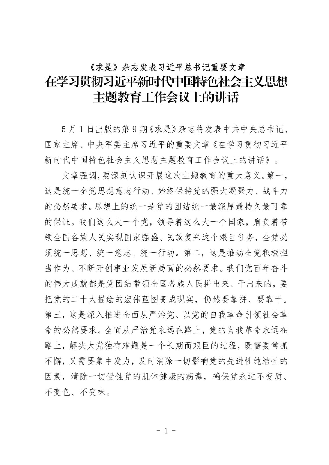 《求是》雜志發(fā)表習(xí)近平總書記重要文章在學(xué)習(xí)貫徹習(xí)近平新時(shí)代中國特色社會(huì)主義思想主題教育工作會(huì)議上的講話