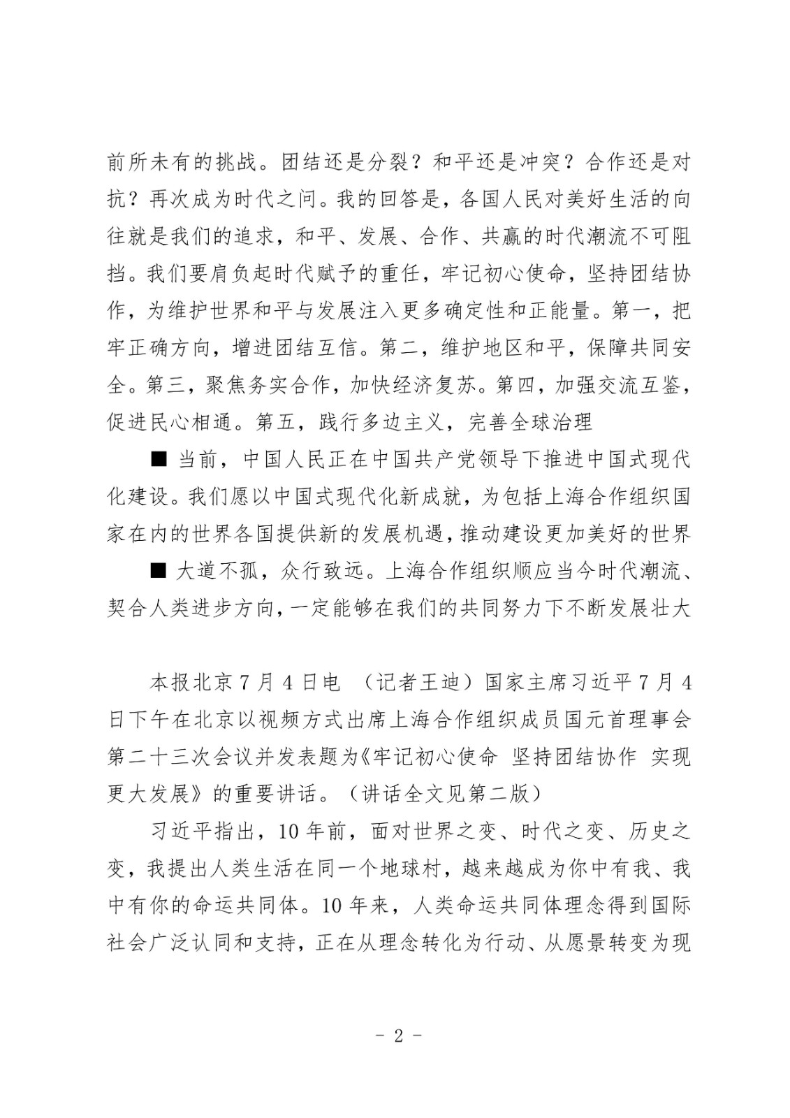 習近平出席上海合作組織成員國元首理事會第二十三次會議并發(fā)表重要講話