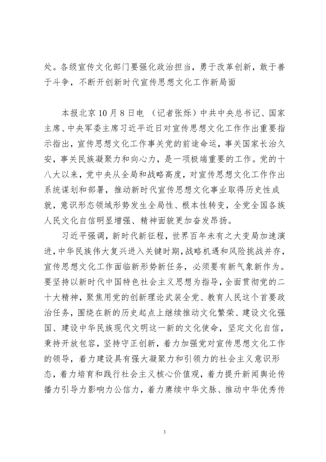 習(xí)近平對宣傳思想文化工作作出重要指示